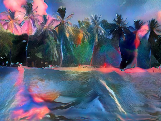 Sunset Beach. I love how AI lets me combine previous analog drawings, photographs, and even other digital work all into an entirely new composition. #aiart #beach #sunset #palmtrees #ocean #caribbean