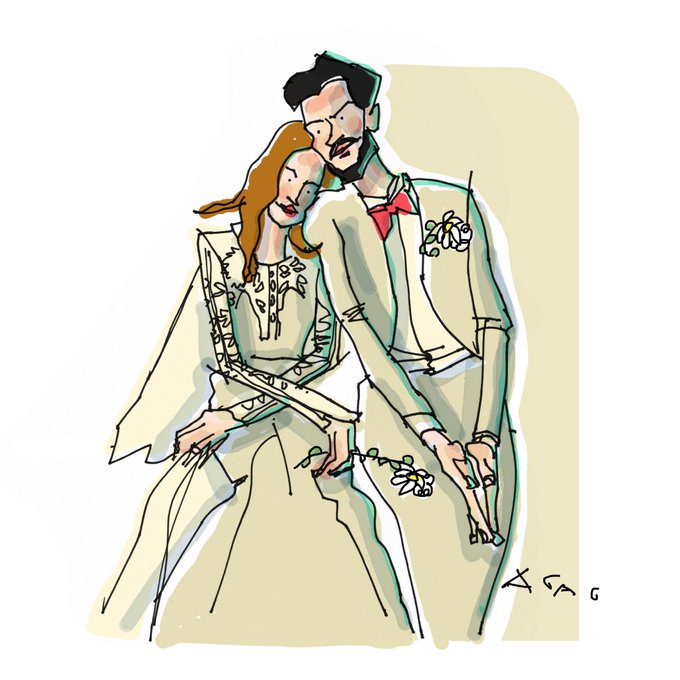 its a #fierycoral bowtie type of day #wedding #annillustrates #Anthropologie #colour_collective #illustration #love
