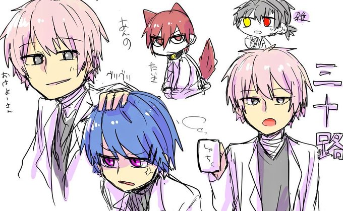@annnonaka この二人でワンセットです。再投稿! ぎざなみ君が研究所に来たのは多分もどき君が出ていった直後とかそこら辺。