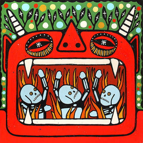 “May You Drown In My Tears” by Mike Egan, acrylic on wood, 16” x 16” x 1"
