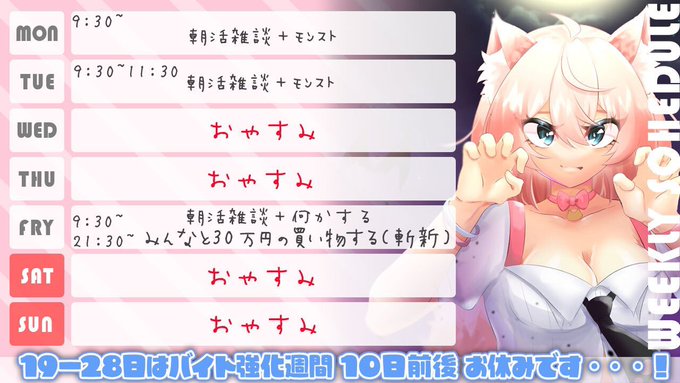 19日~28日までの間はバイト強化週間で10日程休むのでゲリラ出来たら😔🍊!