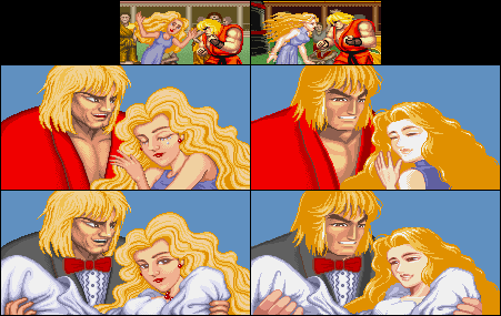 あきまん氏曰く「エンディングに出てくる人物は誰が描く?という段になった時、当時のドッター達はそれぞれめいっぱいだった為、比較的余裕があった背景職人様たちにお願いすることになった。人間を描くのが得意じゃないのに無理にお願いしてやってもらった。」結果のようです