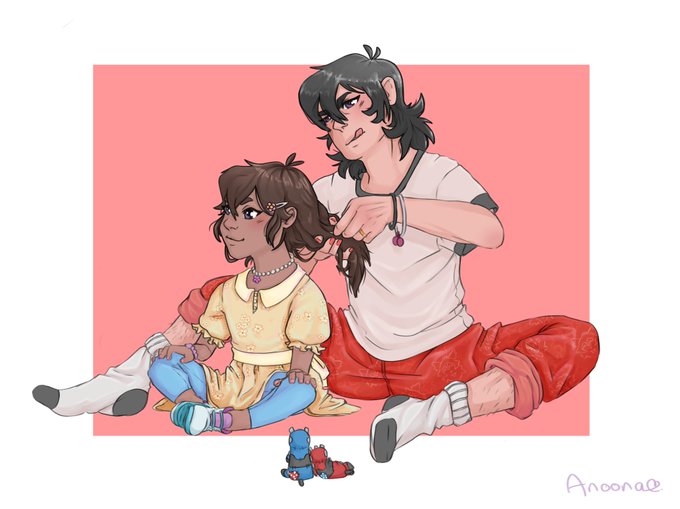 I was really feeling in a family mood, and I had this swimming through my mind. Iris really wanted Keith to be the one to braid her hair except he has no idea what he's doing. In the end it's wonky and uneven, but she loves it anyway. #klance