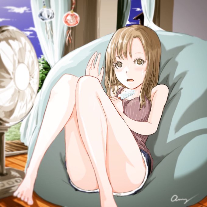 久々に晴れ間が見れた! 秋の足音が聞こえるけれど、もう少し夏がいいなー☀️ #Summer #夏 #女の子 #イラスト #アート #風鈴 #縁側 #日常 #illustration