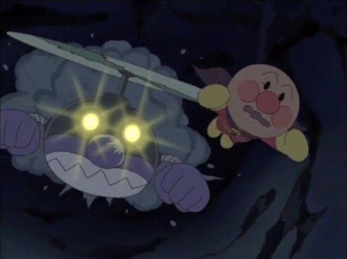 顔が欠けて濡れ(法則に従えば「顔が濡れて力が出ない」)、マントも切れている。ピンチが三重に重なる最悪の展開。パート終了1分を切るまで他ではなかなか見られないほどボロボロの状態。ばいきんまん撤退を喜べない。