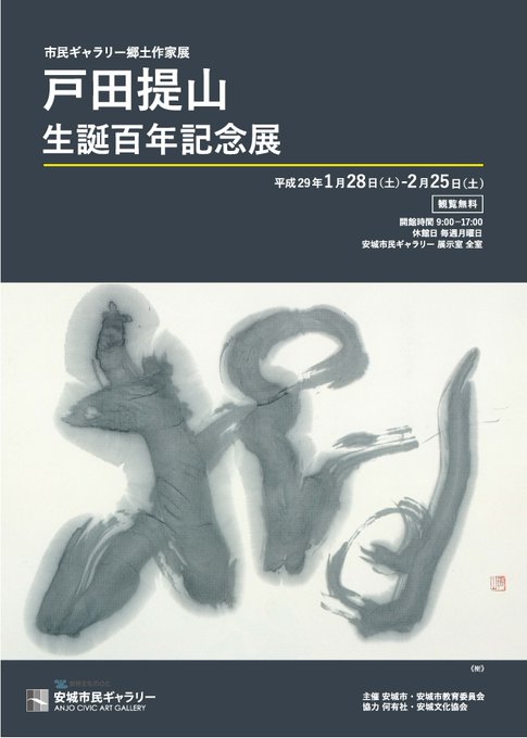 【#安城市民ギャラリー】開催中の市民ギャラリー郷土作家展「戸田提山 生誕百年記念展」は今週25日(土)まで。戸田提山の書の軌跡を振り返り、書の持つ魅力をご堪能ください。観覧無料。是非足をお運びください。