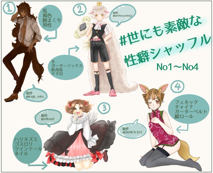 #世にも素敵な性癖シャッフル マカロニさん主催の企画に参加させていただきました! 私は②の「羊」「ガーターソックス」「低身長」「ヤギ目」のお題を描かせていただきました!とっても楽しかった! アンケを繋げますので、私の性癖がどれだか当ててみてくださると嬉しいです☺️🙏