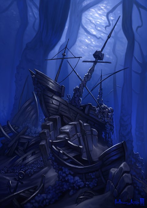 2022 work. First I did the study of this incredible painting by Ivan Aivazovsky and later while working on this bit of concept art I remembered the unique way Aivazovsky painted the water, so I took that detail and added it to my work.