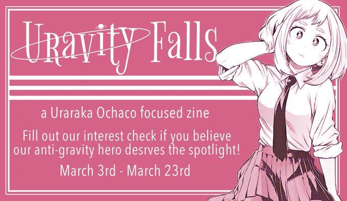 It’s about time Ochaco got her own zine! If you’re interested in seeing a Uraraka Ochaco centric zine, please fill out our Interest Survey!!