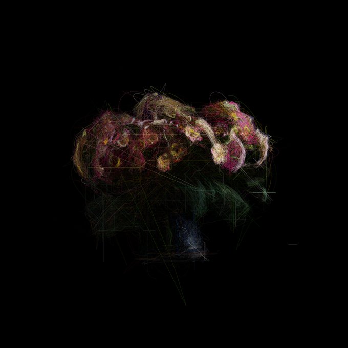 Noisy Gardens #216 @CCDDBB, Daisy Bunch #4 by @WizArtOfTez , Primeroses I @patricktresset and Eyeshadow Roses #490 by @sarah_ridgley #fxhash #objktcom #tezos