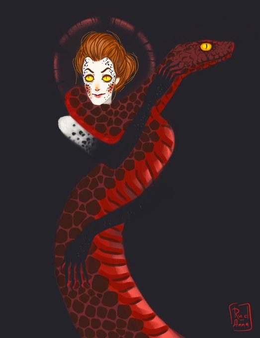 I was very inspired by the illustrations by René Gruau! They are simply incredible in composition, color, and the way the artist places accents. This is Love! And I hope you enjoy this Crowley fem snake! #GoodOmens #Crowley #femcrowley #GoodOmensFanArt
