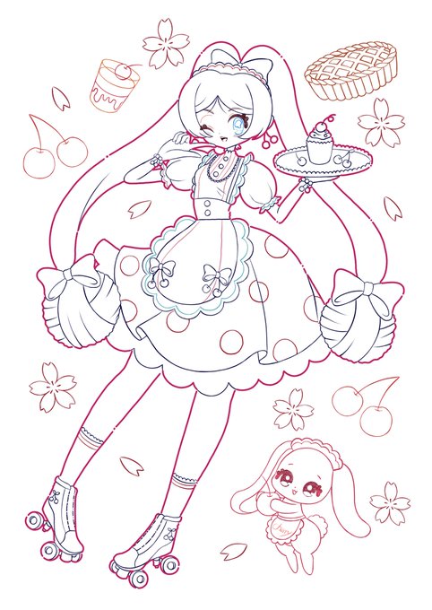 #1日何枚か #創作 ウェイトレスさくらんぼ娘🍒