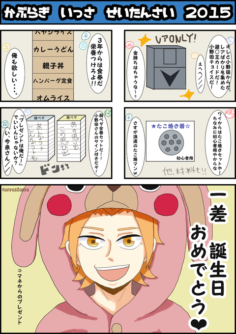 一差ちゃん、はぴばーーーー!! おバカさんでまっすぐなイキリが 大好きです( *´艸`) PC落ちてやり直したけん乗り遅れたけど、 おめでとう('ω')ノ♡ 誕生日変わってもまたお祝いするねw #鏑木一差生誕祭2015