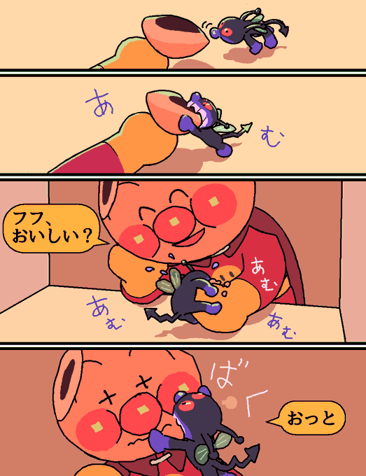 アンばい続き6 さっき知ったんだけど、ばいきがアンを食べるシーンは実在する。'91のDVDに収録されてるバイキンヘリコプター登場回。ばいきは、腹ペコ子だぬきに化けてアンを貪り食い、弱った隙にパン工場を叩く、という作戦をとる。