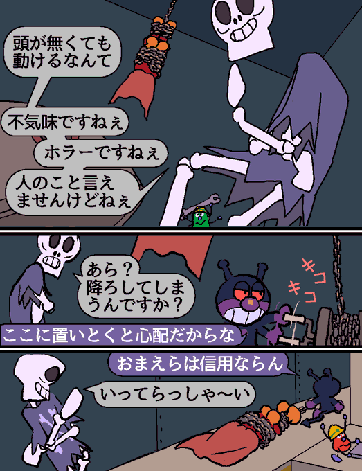 アンパンマンは、ファンの自分が言うのもなんだけど、ちょっと強すぎる作品なので、これのカウンターになるような娯楽はあってほしい。 子供達には、人から押し付けられた役割に縛られなくていいんだよ、自分の体は自分だけが自由に使える大切な道具なんだよ、って他の媒体で伝わってほしい。