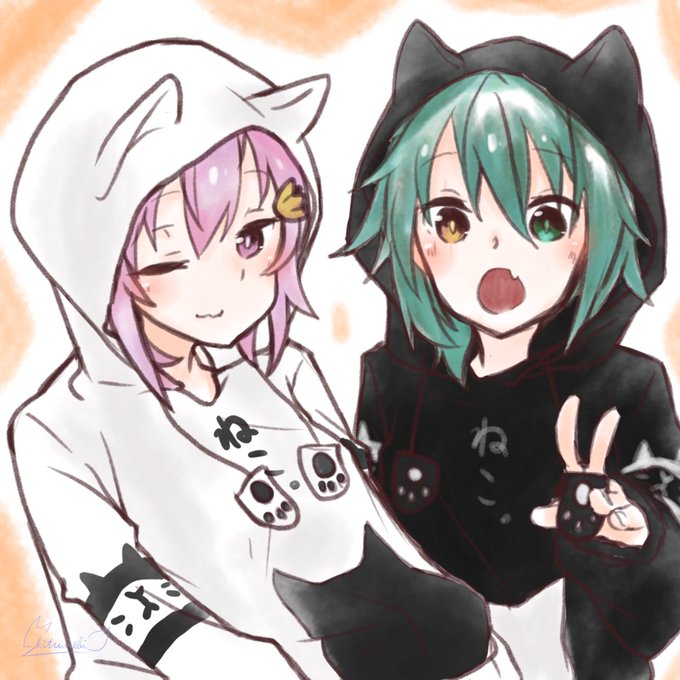 ニコニコマザーシップのイメキャラ湊ちゃんとみなとくん かわいいから描いてみたん 描いてからういちゃん足せばよかったなって #RTAWEEK