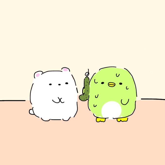 @mof_kikiki まさかの2ぺん…!!! (2ぺんにムギュされるちびぴさんをかかせていただきました!!!)