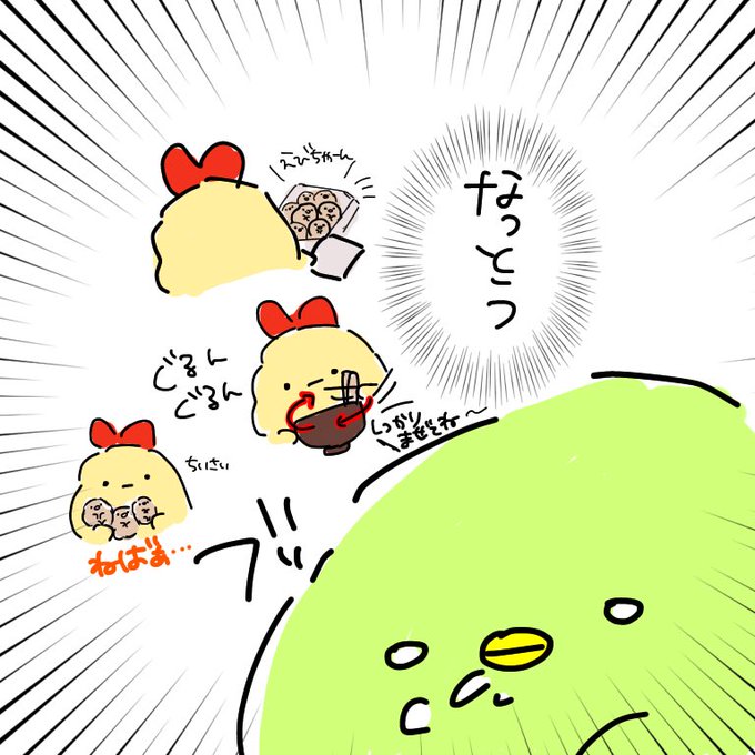 ま○やのゼリーがあけられないえびちゃんをかきました🍇🥕 #いちにちいちこ