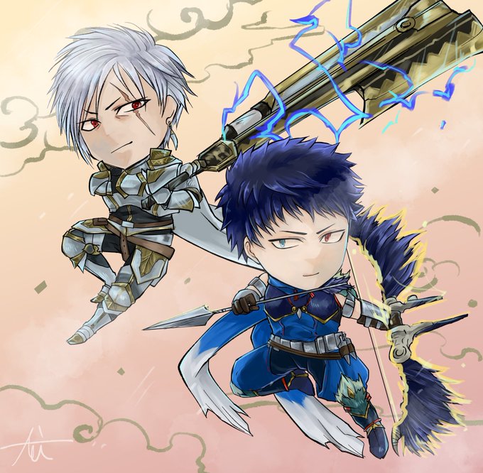 『MHR』のうちのハンターのヴァンと、ゼロさん宅の朧さんお借りしましたー! 二枚目と三枚目は単体