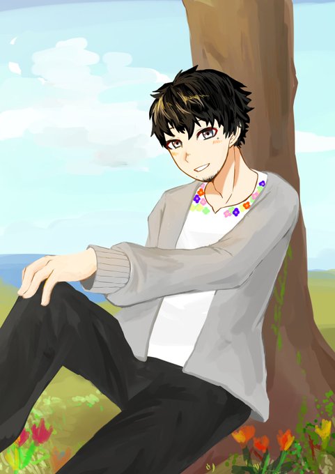 植えた草ちゃんが描いてくれたー! イケメンでめっちゃ優しそう! てか絵柄めっちゃ好きなんだが 俺も描けるようになりたいわ。 ほんとありがとー!