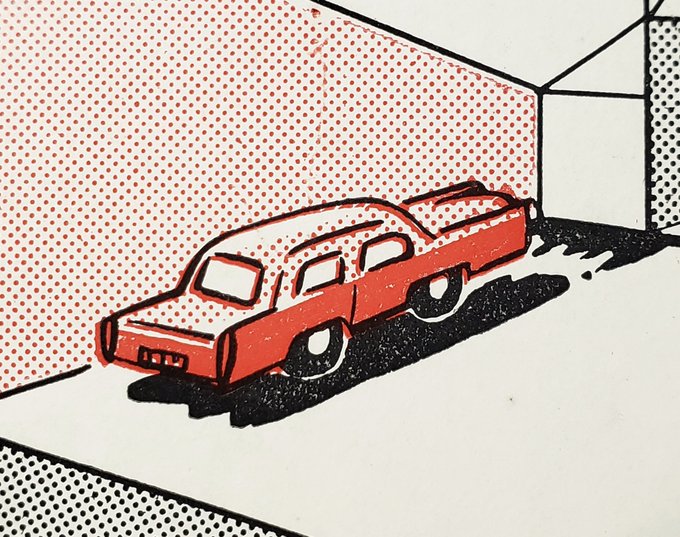 ポップアートとして秀逸だと思っているのだが、まったくそう思わせないところがすごい。1962年、杉並区向井町 (下井草辺り) に建設中のガソリンスタンドの案内。見れば見るほど味わい深い。 #絵葉書