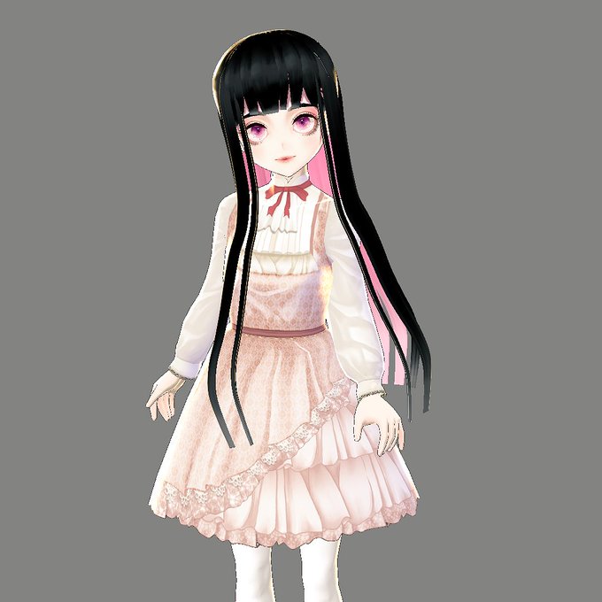 Milk and Blackさん(@Milk_and_Black )のアシンメトリーゴシックドレス(白)Aタイプをお迎えしました・・・!!!!ベビーピンクかわいい〜!!!!好き・・・😌🙏 #VRoid