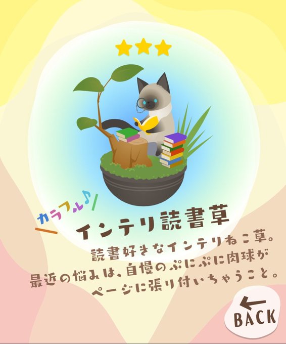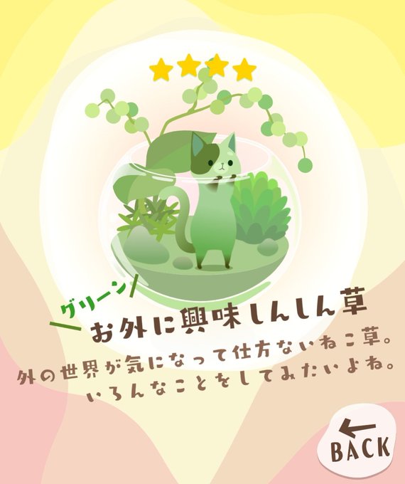 最近、ポイントを貯めるためにあるゲームをしているんだけれど(猫草に水をやって育てるゲーム)、出来上がったものたちが可愛すぎるから見てほしい。