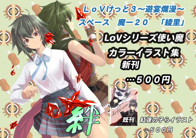 せまる6月11日。ハイライフプラザいたばしの”ろぶけっとRe3”スペース魔ー20にてLoVシリーズカラーイラスト本”絆”を出版します。 去年描いた主人公’sのイラスト本も少し値下げし少数もっていきますのでよろしければどうぞ #lovket