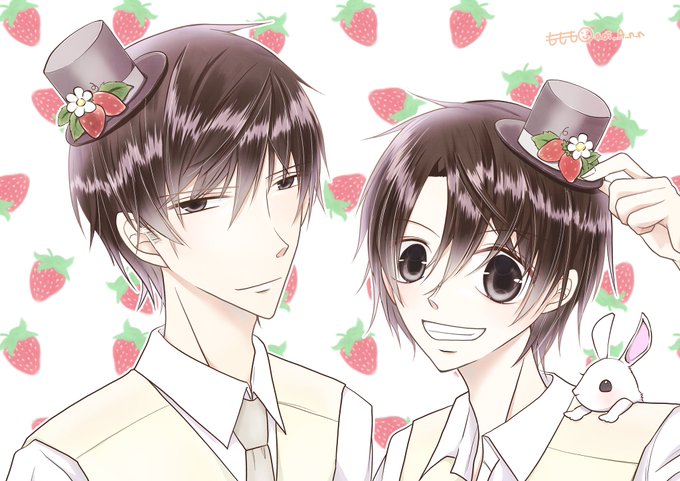 今月のゲームの、ガチャの衣装が可愛くて!苺の小さいハット姿の2人🥰🍓 #トリチア
