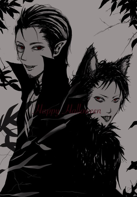 Happy Halloween🎃吸血鬼と狼男!(のつもり)ましたさんにモフモフお耳をやっぱりつけたかった😃頼まれても絶っっ対着ないのわかってる!!でもいいの!邪な女だから!Happy感もゼロだけど!それは私のセンスの問題!間に合ったからよし!