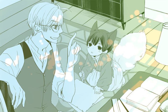 先生の部屋にお勉強に来る子ぎつね