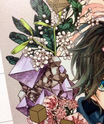 今回もメタリックインクを使って頂いてるので角度を変えると金の結晶部分が鈍くきらめきます