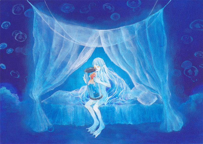 完成しました、相変わらず青い!!展示には参加出来ませんが角展楽しみにしてますー!! #ガチ制作会 #色鉛筆絵を流して色鉛筆民を増やそう