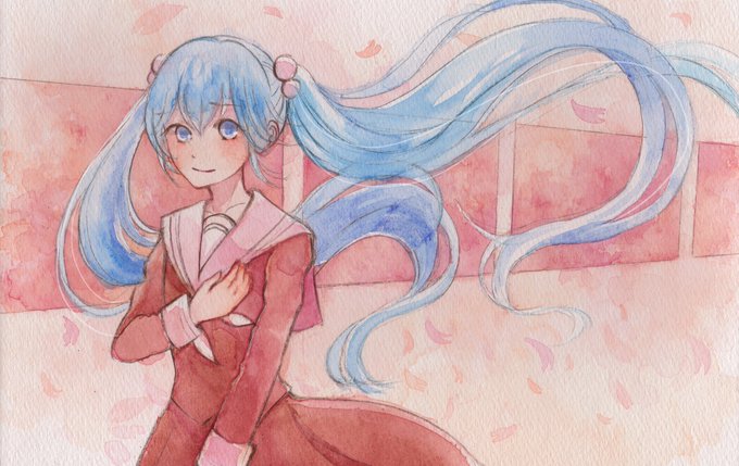 桜ノ雨のイメージイラストを描きました! 学生な初音ミクさんの感じです(*´ω`*)