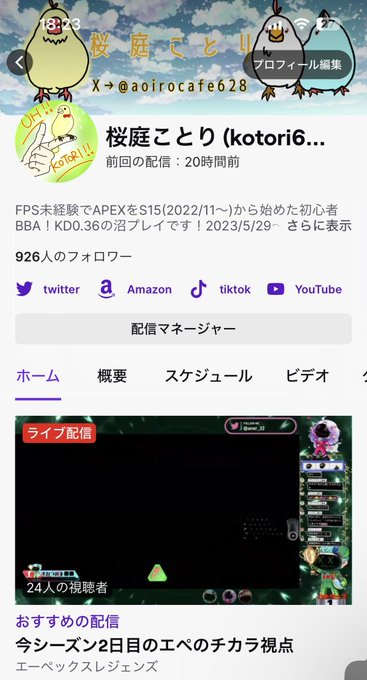 こやちさん@Koyachi_99 がめちゃくちゃかわいいTwitchのバナーを描いてくれました!!鳥まみれ!!3羽もいる!!光ることりはそのまま光ってる!!とってもかわいい!!!( ∗︎°⌓︎°∗︎ )♡︎