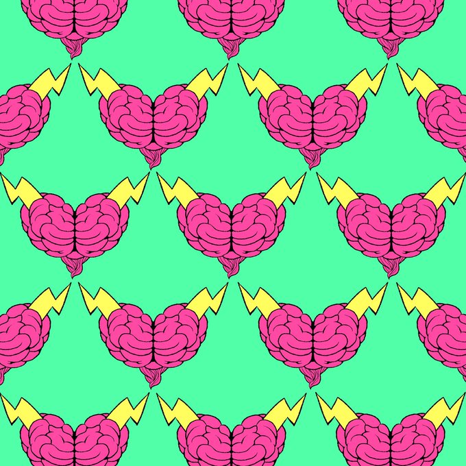 脳みそ柄。 #viviっ #ヴィヴィッ #遺伝子レベルの恋 #恋愛遺伝子 #閃き #直感 #一目惚れ #雷に打たれる #稲妻が走る #電気が流れる #衝撃が走る #南国色 #ビタミンカラー #ビビッドカラー #vividcolors #沖縄 #海 #イラスト #イラストレーター