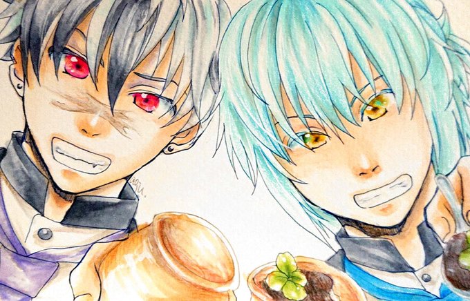 まほカフェ愛憎組描けたー! この2人一緒に描いたの初めてかもしれない シャイロックが美人に描けた気がする😊