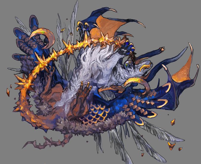 skeb納品しました!オリキャラさんのドラゴン化でした 顔の傷をテーマにデザインしました 異なる体のパーツを組み合わせて継ぎ接ぎをイメージしてます 翼の数は三枚ですが違和感のない形にできたと思います ありがとうございました!https://t.co/0veKhS8Ko6 #Skeb #Commission @skeb_jp