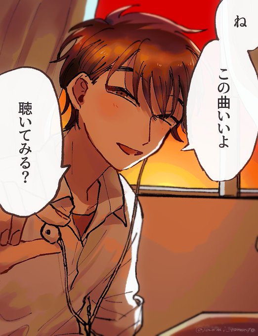 同級生のtgy snnskにこの曲いいよって言われて放課後のカーテンが揺れる二人きりの教室で片耳ずつイヤホンを耳にさして曲を聴くドキドキシチュ #RKRNプラス