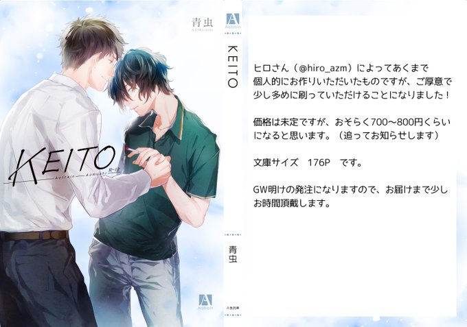 ヒロさん制作のKEITO本、ご厚意で少し多めに刷ってもらえることになりました。ご希望者さんの数を把握したいので、5/5までにお声掛けください。自家発送でもいいよ、委託通販がいいな、などのご希望も合わせてお知らせいただけると参考になります。