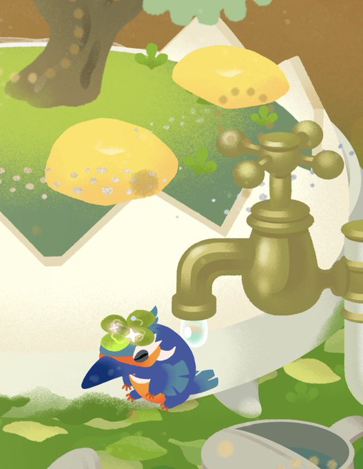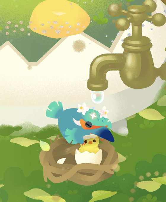 ピヨにお水がかからないようにしてあげるモノ種ちゃん☺️☺️☺️✨✨やさしい