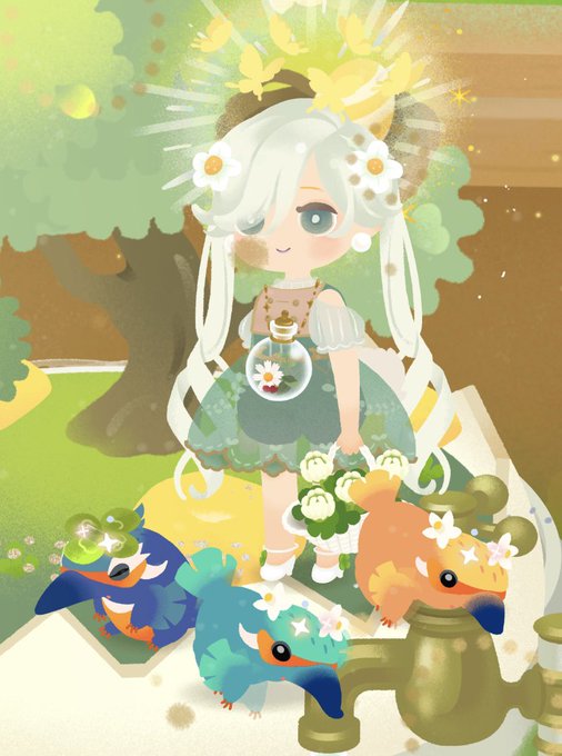 白ブラドくんのお誕生日に桜の花びらをいただいたのでお花見🌸ソニが先に使わせてもらっちゃったので白ブラドくんは花冠にしよう☺️✨