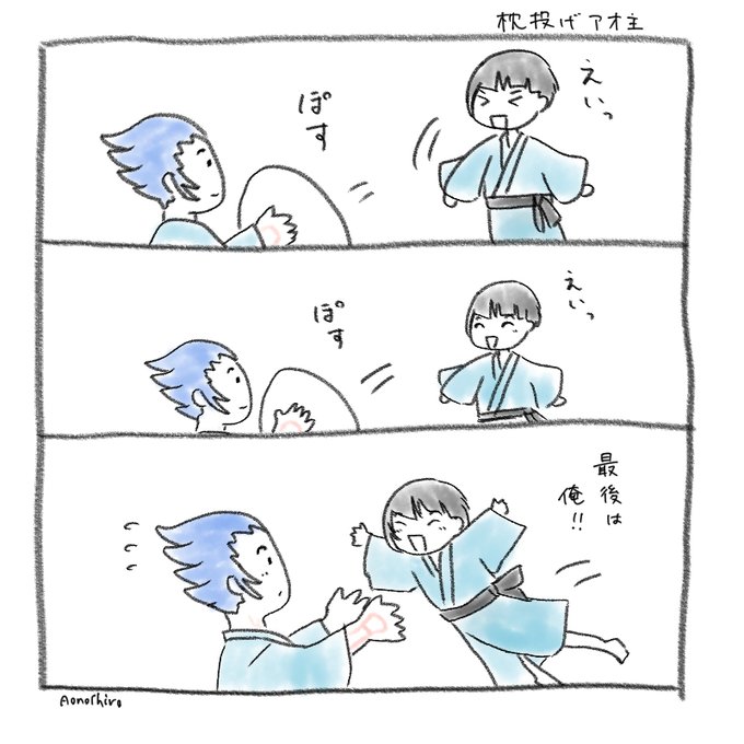 アオ主らくがき再掲。いつもお世話になっている診断メーカーのお題。中でもこれはシチュエーションがわからなすぎて面白かった!