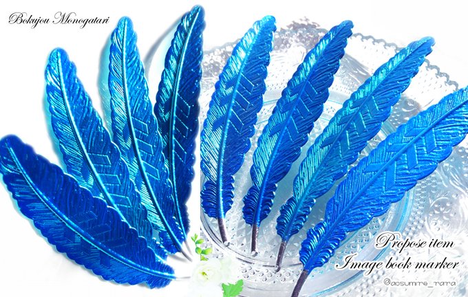 プロポーズアイテムの青い羽をイメージした栞です