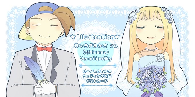 ひいらぎみかささん(@hiramy)に描いて戴いたピート&クレアの素敵なウェディング衣装イラスト付きです