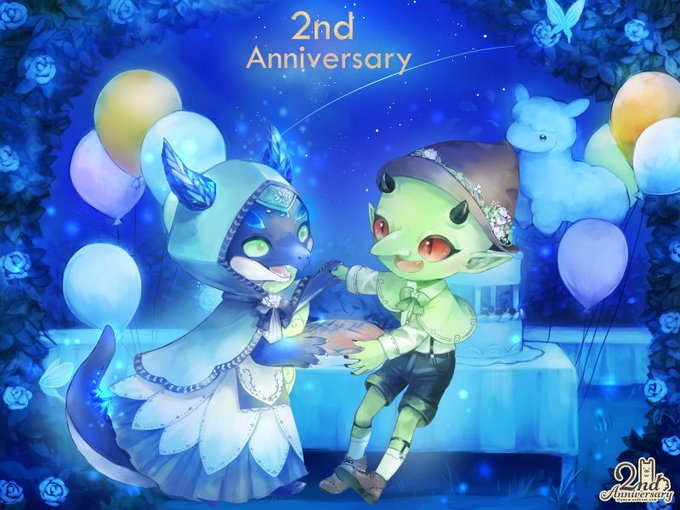 W虞淵で二周年集合イラスト~! 燕尾服ベースの中華風ってどんな感じだろう~と楽しみにしてました 細部が確かに中華っぽくて通常のテイストでお願いしたくなってきちゃうし機会を見て頼めたらいいな 絵師さんエルさんありがとうございました~! 六畳一間絵師/ホワイトレター/(C)アルパカコネクト