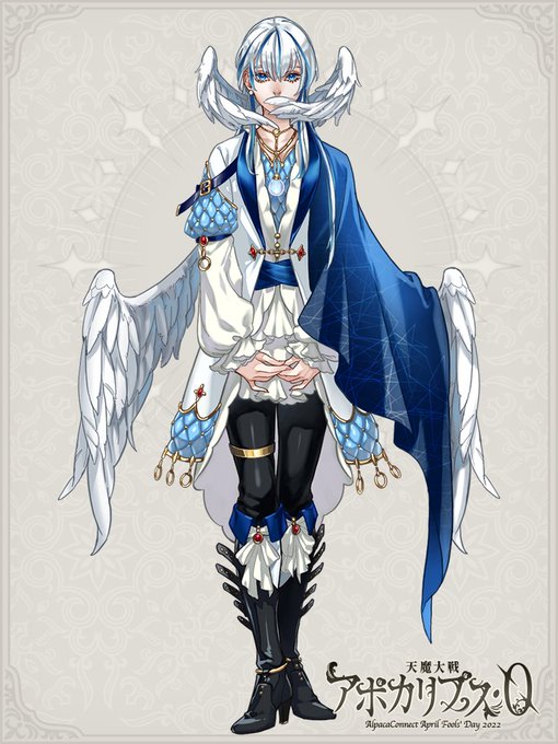 蒼砥アポカリ! 夜の姿に羽が生えてたからそれを大きく→首から生えてるから声出しにくそう→上に忠言とかして声を奪われた歌好きの天使にしよ!と発注文を書きながら考えてぶん投げました 思う所はあるけど全部吹き飛んだ! ありがとうございました! 毒島絵師/東京インソムニア/(C)アルパカコネクト