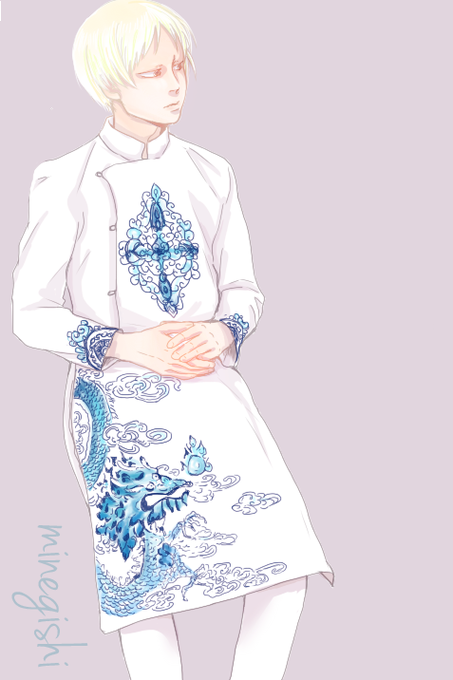 以前回ってきた男性用アオザイが島峯に似合いそうだなーと思ったので、着せてみた。ほぼトレス。