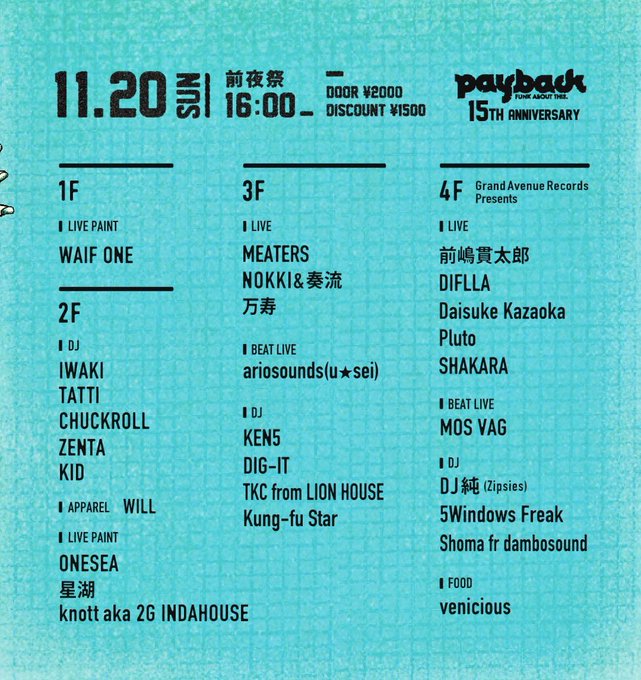 2022.11.20 (SUN) 16:00- 【Aoyama Hachi 27th Anniversary 前夜祭 -PAYBACK!! 15th Anniversary-】