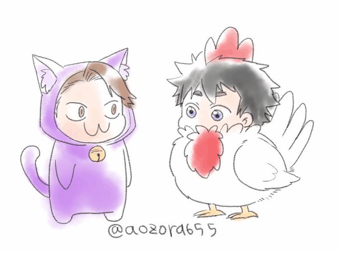 リプもらって、ハートを飛ばしあうみよにゃんとさくこっこさん可愛いなと思って描いてみました